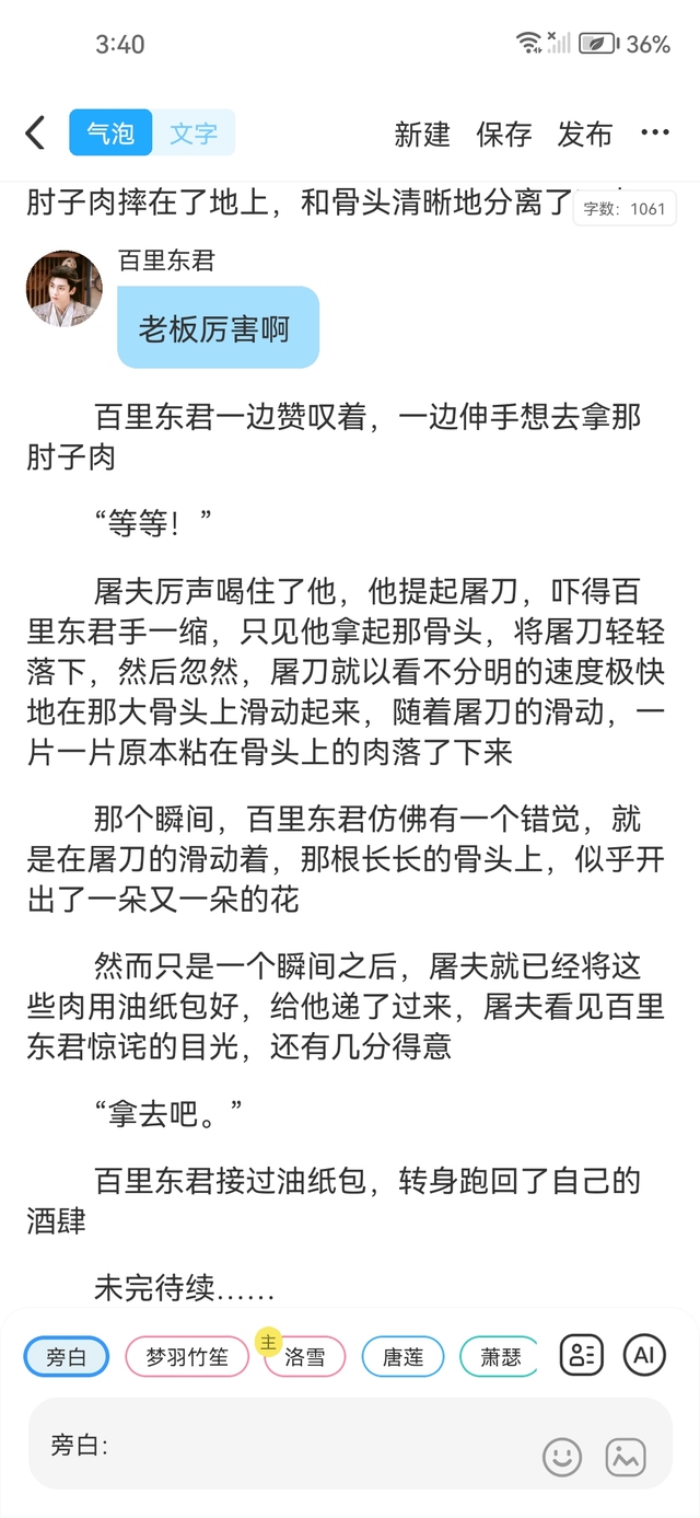 司空长风(少白)我说你这有钱人家的公子哥,也太没有生活常识了,这肘子肉,肉可以用来红烧、做酱肉,这骨头用来炖汤,一般店家都会给你把肉剃出来,把骨头给你砍成几段熬汤,这骨头上的肉必然得留着,若是都剔得干干净净了,那么炖出来的汤,哪还有半点滋味,哪个屠夫会做这样的蠢事?还有,剔肉的确是门手艺,但那是有专门的小刀的,哪个屠夫拿着砍骨刀剔肉,疯了吗?