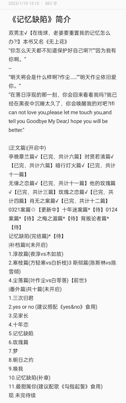 《记忆缺陷》,作者觥秋。