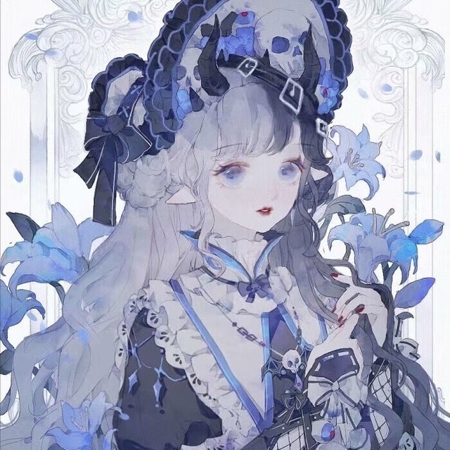 此时的兰铃头发一半是淡淡的浅蓝,一半是美丽的深蓝,眼睛像是两个头发色混合在一起的眸子,出场时还有蓝色牵牛花坠落