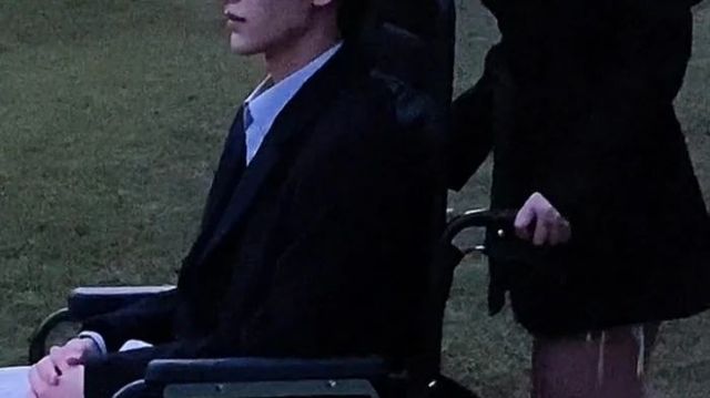 而坐在轮椅上的男孩没有接话,看向远处飘落的树叶轻声开口。