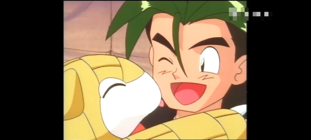 小明的神奇宝贝将笑得开心的小明和穿山鼠包围起来。