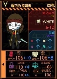 员工拥有三个主要度量能力的数值,它们分别是品质、属性和等级。主管在每日开始前的部署界面、选取员工右上角的员工情报和选择异想体收容单元指派员工工作的操作界面都能够直接检阅单个员工的这三个属性。