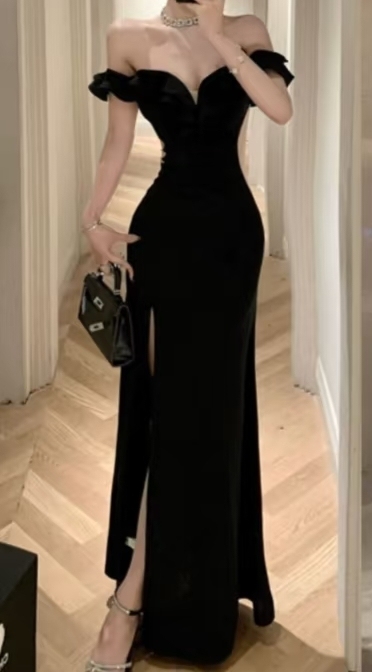 海藻般的黑色卷发滑落胸前,一袭露肩高叉黑色晚礼服,映衬的肌肤如雪,在淡淡的灯光下宛如盛开的白莲,而白皙迷人的双腿在黑色中绽放无声的诱惑。