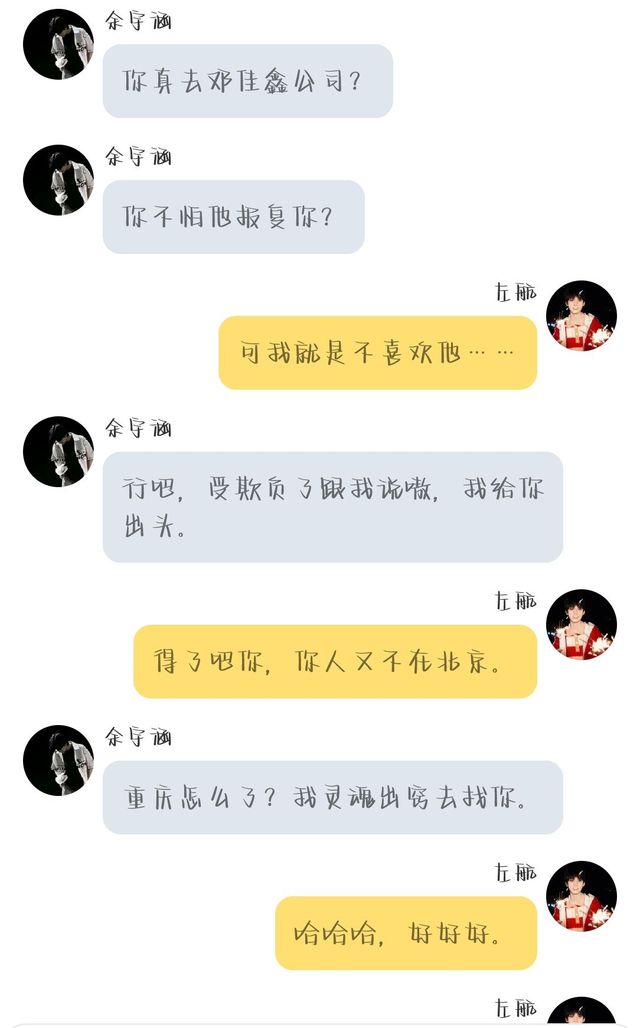 余宇涵你真去邓佳鑫公司?