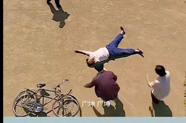 一堆人去看谢广坤,不知道人有没有事儿,谢广坤躺平在地上。