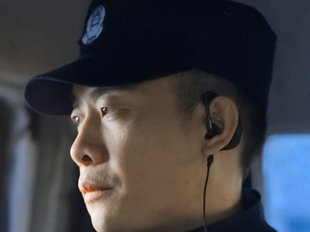 他应该是刚刚才弄完任务,还戴着挂式耳机,戴着警帽。