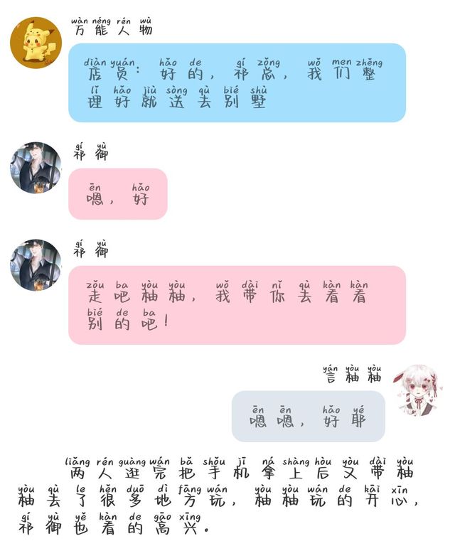 祁御好了,柚柚我们先去看看弄的怎么样,不满意我们再换(得赶紧跳过这个话题,不然被柚柚知道我这样,肯定会以为我是一个随随便便的人,那想追柚柚不就更加难了吗?)
