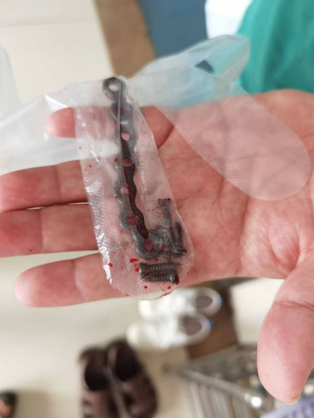 作者恬瓜儿这是我锁骨取出来的固定钢板和钢钉