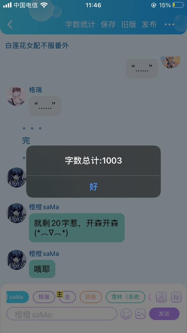 橙橙saMa“哦耶,就差100字满1000+啦.”