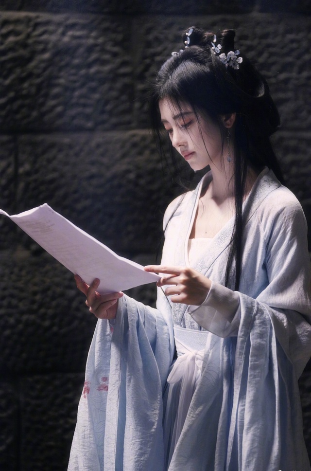 姑娘一双看谁都温柔的桃花眼,鼻梁高挺,弯弯的眉毛,梳的精致的发髻,点缀着些发饰,在肩膀处自然垂下一缕青丝,衣裳修身,露出一节雪白的脖子和精致的锁骨,加之是修仙之人,更处处透露着冷清之色