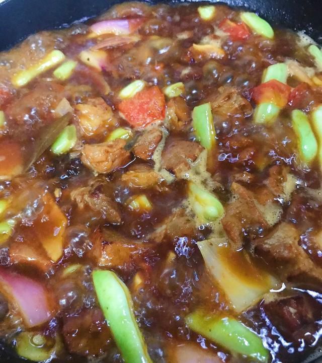 小火慢熬成焦糖色