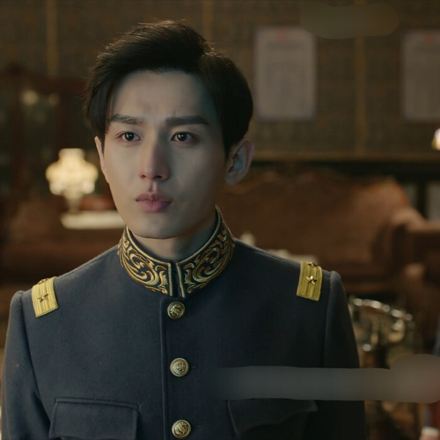 看不清脸的军装男子,旁边的女孩身着白色旗袍,身体微微颤抖着。