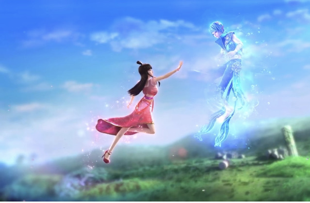 水清璃水王子站在地上,张开双臂,等待他的女孩
