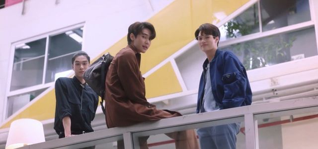 Bow有点说不出口,用手肘戳了戳旁边的Sanchai,Sanchai也不好意思说,就看想向了在旁边楼梯口里待着不好意思过来的Jane