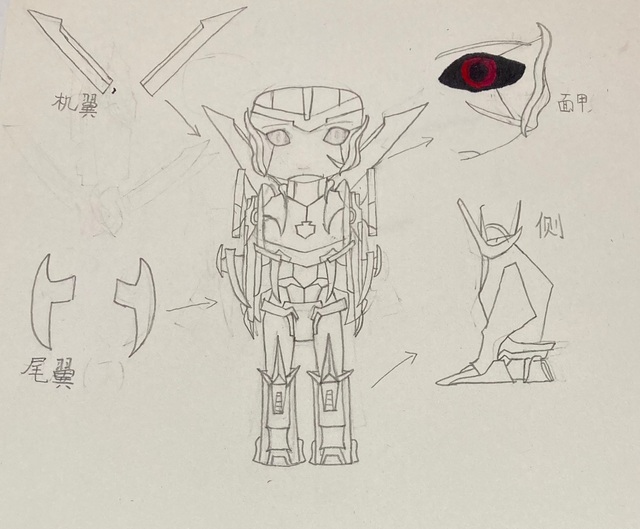 在放一下官方的杂兵三视图给你们对比一下吧,我做了一点改动,你们就当是极昼加入汽车人后自己改造了一下机体好了。