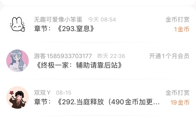美式全冰感谢会员和金币,明天会有加更,目前欠更:会员+1,金币+1