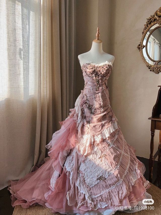 江夏穿着一身粉色礼服