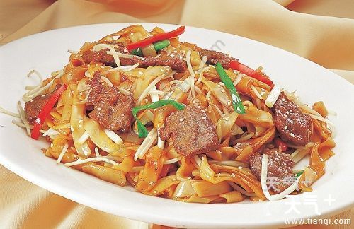 {干炒牛河,在广东是最常见的美食之一,到处都可以吃,主要以芽菜、河粉、牛肉等炒成。先把嫩牛肉炒至半熟。然后下油,炒香芽菜及洋葱,下河粉快炒,加入酱油及熟油,最后放入牛肉炒匀。干炒牛河十分讲究火候和手法,是考验厨师炒菜技术的一大测试,也是食客的美食天堂。