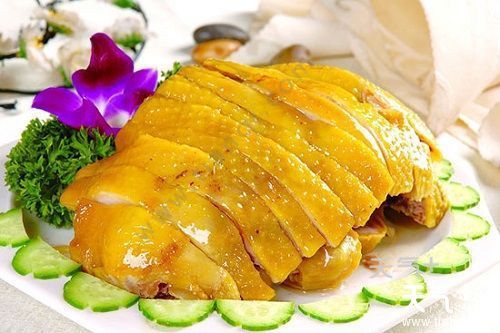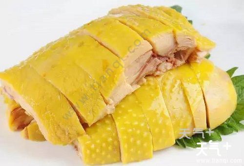 {白切鸡是传统名菜,也是广东地区的代表菜,创于清代,至今已经有百年的历史。因烹鸡时不加调味白煮而成,食用时随吃随斩,故又称“白斩鸡”。又因其用料,广东省清远市阳山县出品的三黄鸡(脚黄、皮黄、嘴黄),故又称三黄油鸡。
