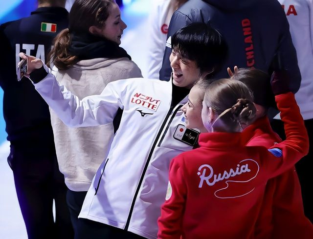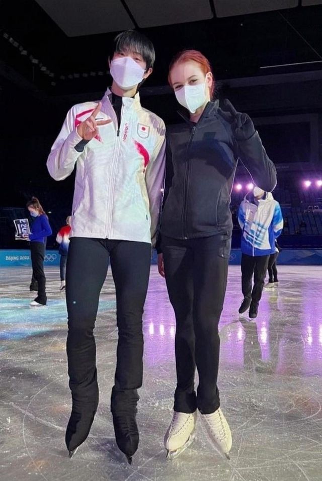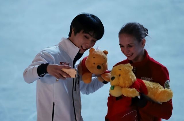 特鲁索娃Yuzuru Hanyu!Что ты здесь делаешь? Шелбакова пошла за наушниками.羽生结弦!你怎么来了,谢尔巴科娃去拿耳机了。