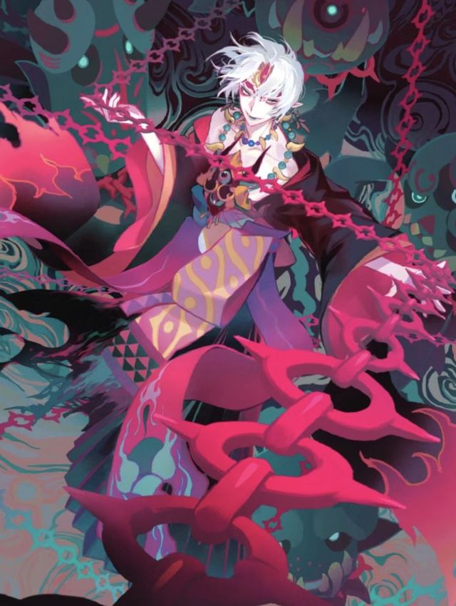 随后红瞳叶修操作着锁链将其他八个鬼穿成串,然后一起撕开