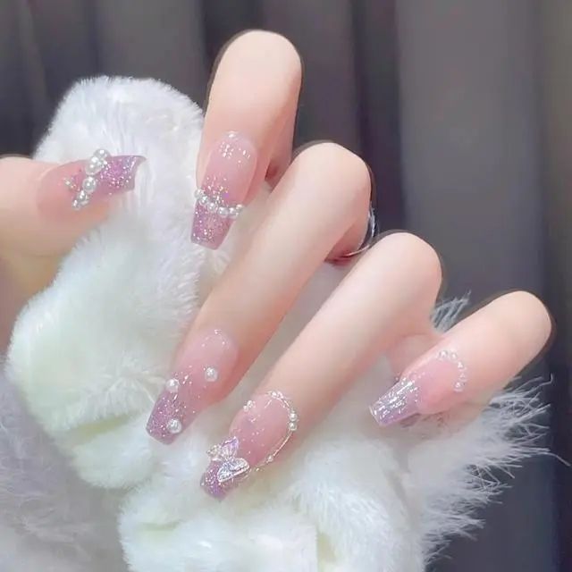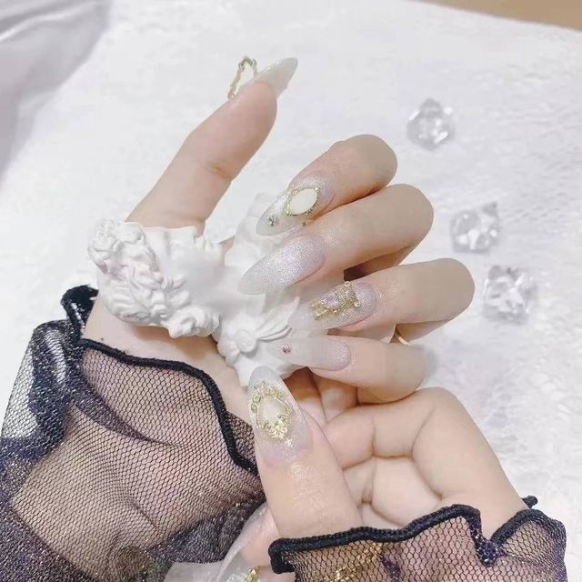 人鱼姬柔光美甲:这款美甲是今年备受推崇的热门款式。它以透明乳白色作为底色,再配上琉璃渐变的贝壳粉,让指甲在阳光或灯光的照射下展现出梦幻般的渐变色泽,充满仙气,优雅而耐看。