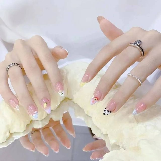 缤纷糖果配色美甲:这是一种让人感到治愈和舒心的美甲款式。通过使用不同色调的糖果色系,打造出独一无二的个性化美甲款式,同时也具有年轻化的效果,让你看起来更加青春活力。
