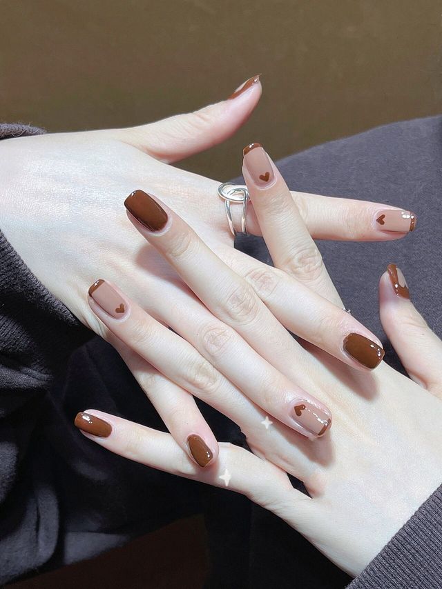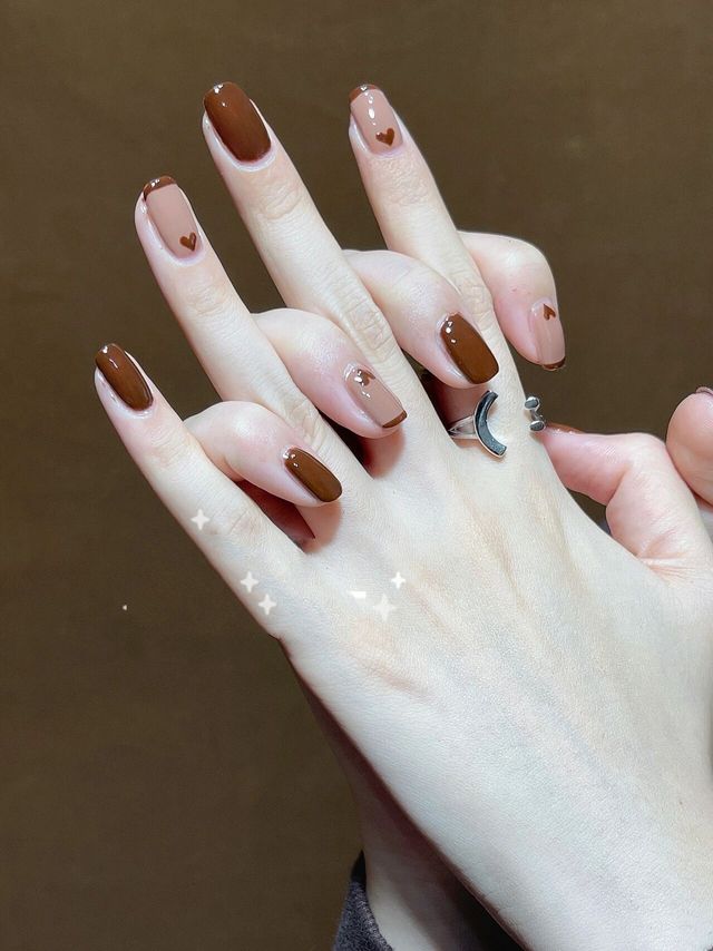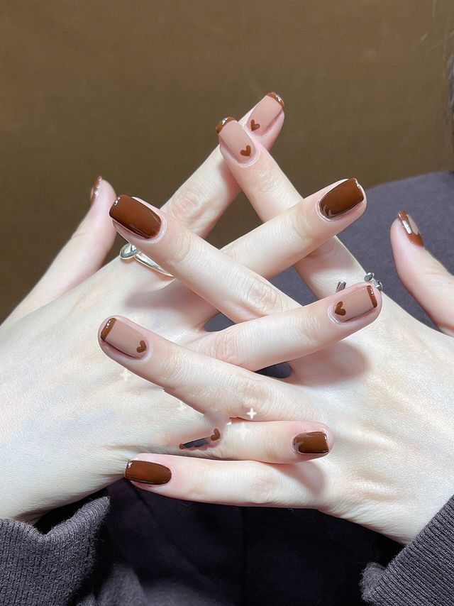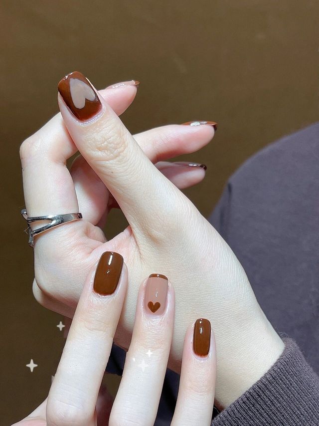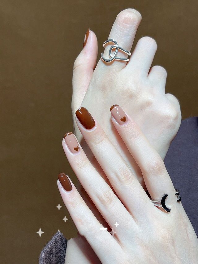 气质显白🌟秋日焦糖色系🍂跳色法式爱心美甲