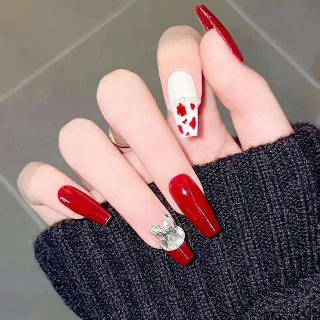 5,红色奶牛穿搭美甲!
