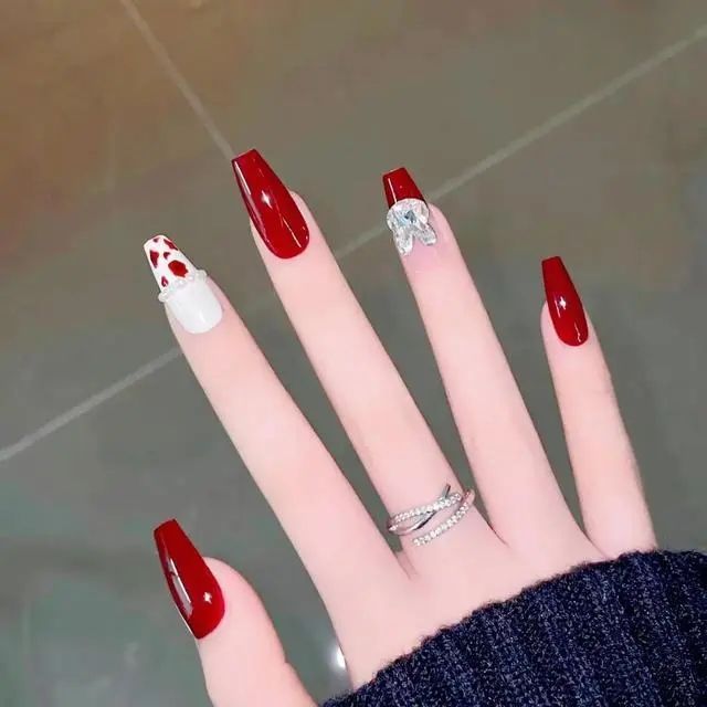 6,红色铂金钻石美甲!