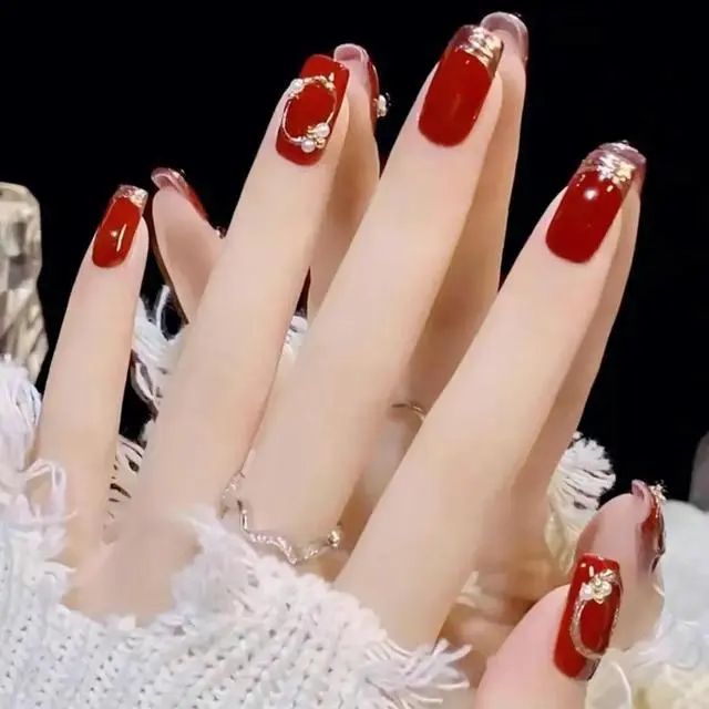 红色打底做渐变,猫眼吸出法式光,再搭配星星装饰!喜庆又不失优雅!搭配什么衣服都不会出错哦!