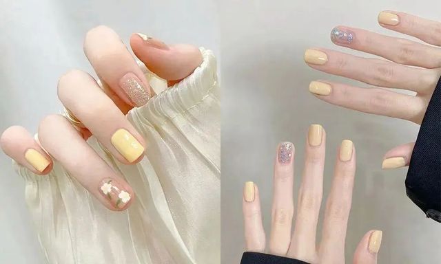 这款奶油黄俏皮美甲特别适合喜欢可爱甜美风格的小姐姐们,展现出青春活力的气息。如果搭配一些亮钻、美甲贴纸或渐变效果,指尖就会呈现出更丰富的层次感,既保留了活泼感又不失质感。