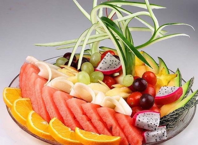四菜一汤外加一个水果拼盘