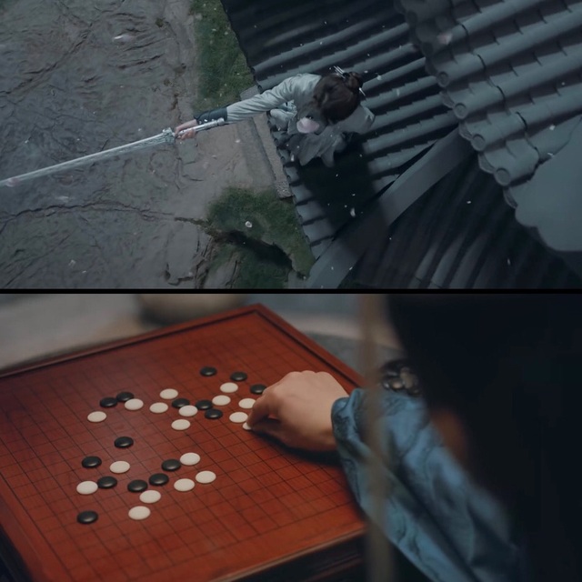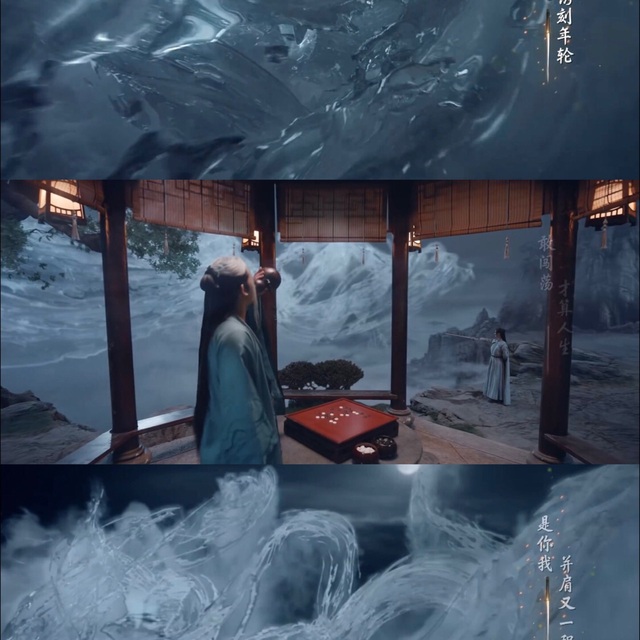 百里东君琢磨着棋局,落下一子后抬头笑看着李寒衣