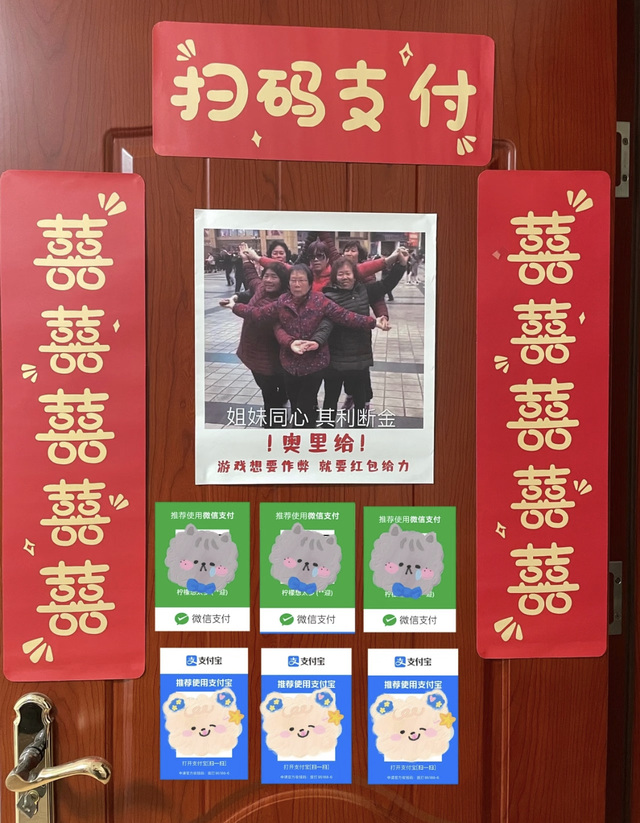 周九良(带着兄弟们去了房间门口就看到门上贴着两位伴娘的微信收款码和支付宝收款码,外带几位嫂子的收款码)