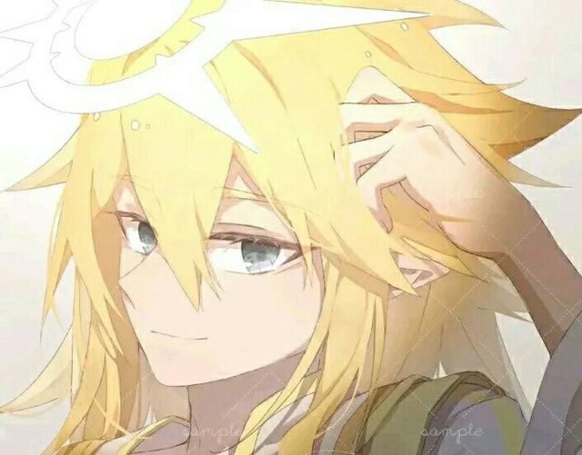 他有一头金发,阳光照耀着,点点阳光从发与发间透露出来,柔顺的金发被主人用黑色的发箍禁锢起来,微风熏熏的吹来,吹得金发飘飘扬扬,调皮似的在那俊美脸上摆弄着。