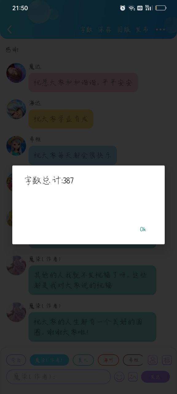 魔染(作者)虽然我的字迹没有其他作者的字迹,行云流水,妙笔生辉,但是我也写出了自己独有的风格,也祝愿大家可以写出自己独有的作品,谢谢啦!