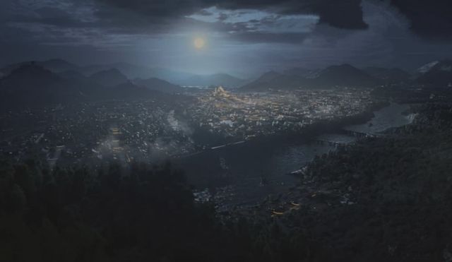 一轮玲珑的弯月挂在梢头,氤氲的月色透过树叶儿,洒在大地的每一片土地上,在遥远的天边。