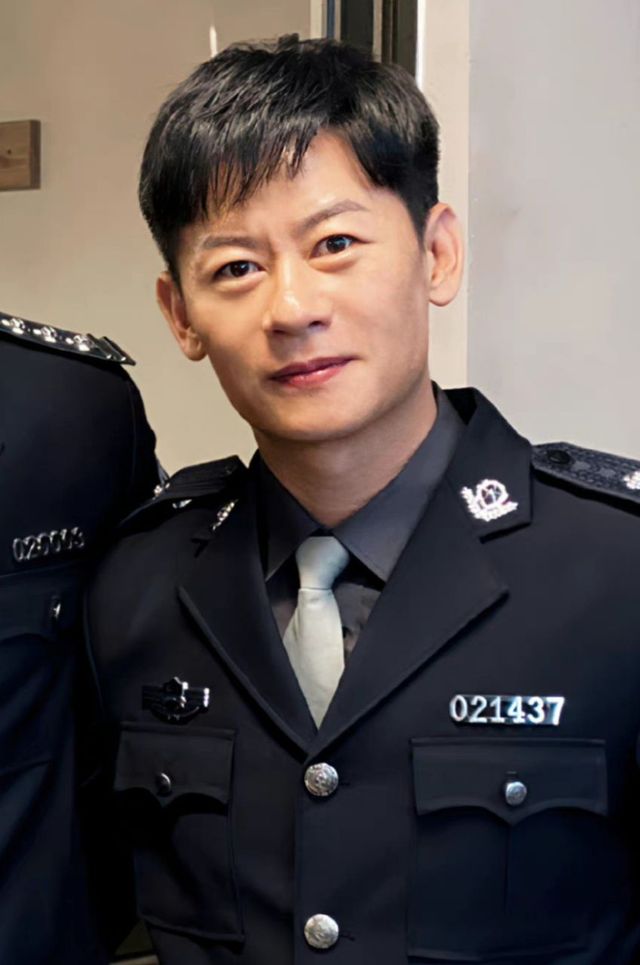 这个人穿着警服,正义凛然的模样。
