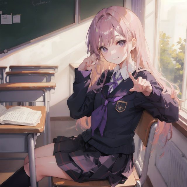 女孩留着长长的黑发,长度已经达到了腰下面一截,淡蓝紫色的眼睛散发着一种说不出的光芒,她的身材正被碧白色的校服映衬着,校服上银色装饰的花边似乎也在为她起舞,前面留着渐渐倾斜的头发帘,头发右侧卡着一个银白色的卡子。