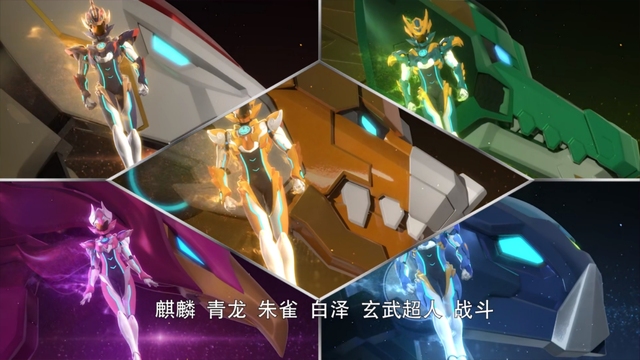 大家(除张力)麒麟,青龙,朱雀,白泽,玄武超人战斗