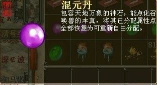 无题混元丹 《大话2》游戏物品 本词条是多义词,共2个义项 混元丹是洗除召唤兽属性点物品,召唤兽使用后,可一次性将召唤兽所有已分配属性点恢复为可分配点数,比之神之石各有利弊。 中文名 混元丹 外文名 Mixed yuan Dan 性质 洗除召唤兽属性点物品 方式 天庭任务 混元丹获得方式 混元丹可以通过以下大话西游2任务获得:天庭任务、鬼王任务、修罗任务(要求110级及以上)、日常任务、国庆任务、五一任务、周末任务、大闹天宫任务。 另外此物品为常见物品,也可以在普通活动任务获得。玩家需要物品栏有空的时候才能有获得的机会。[1]