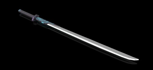 无题外表特征 黑色刀柄与半截剑身,刀鞘上有着“柒”字样(“柒”为玄武国首席暗影刺客的代号),剑身有蓝色的条纹。 魔刀千刃外表特征