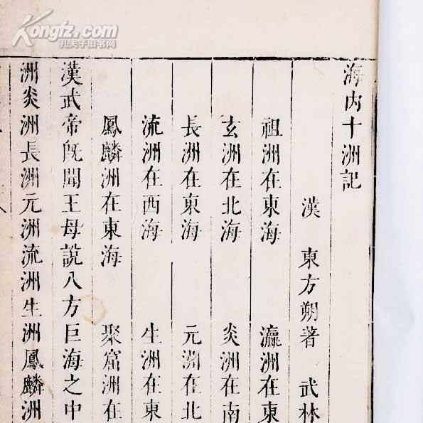 无题委托者大约是东汉六朝的方士,因东方朔长于文辞,又喜诙谐,是委托著述的理想人物。晁公武《郡斋读书志》说:“班固《赞》言:‘朔之诙谐,逢占射覆,其事浮浅,童儿牧竖,莫不眩耀,而后好事者,凶取奇言怪语附著之朔。’岂此书之类乎?”陈振孙、胡应麟亦证其伪,见本书《神异经》条。《四库全书总目提要》更指出了书中不少地方存在讹误:“其言或称臣朔,似对君之词,或称武帝,又似追记之文。又盛称武帝不能尽朔之术,故不得长生,则似道家夸大之语,大抵恍惚支离,不可究诘。考刘向所录朔书无此书名。书中载武帝幸华林园射虎事,案《文选》应贞晋武帝《华林园集诗》李善注引《洛阳图经》日:‘华林园在城内东北隅,魏明帝起名芳林园,齐王芳改为华林’,武帝时安有是号?盖六朝词人所依托。观其引卫叔卿事,知出《神仙后传》,后引《五岳真形图》事,知出《汉武内传》后也。然自《隋志》已著于录,李善注张衡《南都赋》、宋玉《风赋》、鲍照《舞鹤赋》、张衡《思玄赋》、曹植《洛神赋》、郭璞《游仙传》第一首、第七首、江淹《拟郭璞游仙诗》、夏侯玄《东方朔画赞》、陆任《新刻漏铭》并引其文为证,足见其词条丰蔚,有助文章。”这里从叙述体例、著录情况、地理历史沿革以及援引他书情况等几个方面详细证实了属伪托之书,是可信的。 《海内十洲记》的内容为:汉武帝闻西王母说八方巨海之中有祖洲、瀛洲、玄洲、炎洲、长洲、元洲、流洲、生洲、凤麟洲、聚窟洲,遂向东方朔询问其所在及所有之物名,东方朔就详细地向武帝介绍了十洲及沧海岛、方丈山、蓬莱山、昆仑山之所在物产、神仙。
