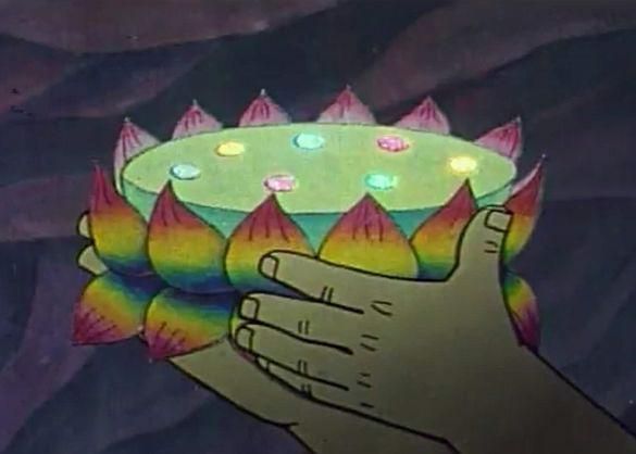 无题第九位:七色彩莲 因为七娃黑化的原因,其他葫芦兄弟被七娃的紫葫芦所收,而后七娃也被金蛇精收进了紫葫芦,金蛇精眼看就要得逞,练成七星丹。不过老爷爷却找到了至宝七色彩莲,让葫芦兄弟齐心协力,终于铲除了金蛇精和蝎子精等妖怪们!