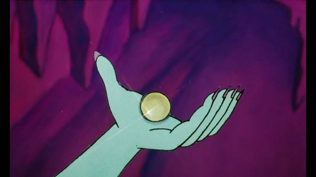 无题外观 一颗黄色的球形丹药,外壳很硬(录音带和中影、岭南、少儿版连环画中为七彩钻石,上美版连环画为一颗洋红色的丹药)