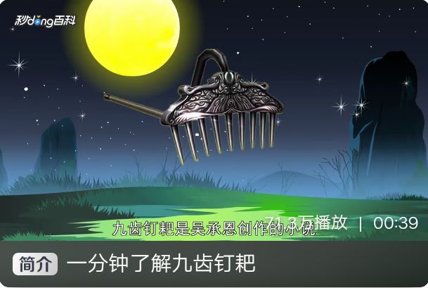 无题九齿钉耙 《西游记》中的兵器 词条内容贡献者 共60个贡献者:分分覅哥哥、開渀馳偸圡荳、路肩菌、314088351 九齿钉耙,是明代小说家吴承恩所著《西游记》中主要角色猪悟能所使用的武器。全名称为上宝沁金耙,乃太上老君用神兵铁亲自锤炼,然后外包了六丁六甲,又给了玉帝,最后玉帝又送给了猪八戒当礼器。 九齿钉耙重量有一藏之数,连柄五千零四十八斤(一藏之数)。 中文名 九齿钉耙 外文名 Nine tooth harrow 别名 上宝沁金钯(原著写的是“上宝逊金钯”,人民文学出版社)、九尺钉钯 制造者 太上老君 持有者 猪八戒 功能 降妖除魔、护己杀敌 重量 五千零四十八斤(一藏之数) 出处 《西游记》