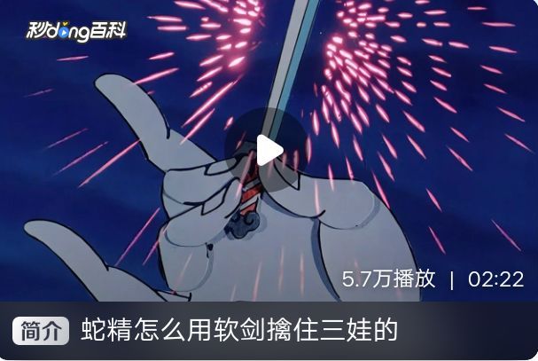 无题战绩 刺瞎二娃 在得知二娃有千里眼、顺风耳的本领后,寝食难安的蛇精早早在迷镜宫中作了一番布置。她层层设计,逐步削弱二娃的感官能力后[6]用宝剑化作强光,刺瞎了二娃的千里眼。[5] 蛇精的剑变成强光刺瞎了二娃双眼 降服三娃 蛇精与三娃约定三剑定胜负,但她铆足了力气,连砍三娃头颅两剑都无法伤其分毫。狡黠的蛇精很快悟到了“硬的不能降服三娃,只能来软的”,于是她一掐法诀,扭动着身子,放出了柔韧的软剑,用“以柔克刚”之法将铁娃死死地缠住了。[1] 蛇精扭动着身子,放出软剑对付三娃 偷袭火娃 蛇蝎二妖将水火二娃骗入妖洞赴宴。一番觥筹交错后,蛇精向两兄弟献舞,热舞一番后伺机将宝剑掷向火娃,但被机警的火娃口吐闪电击碎。[2] 共3张 蛇精偷袭火娃,但以失败告终