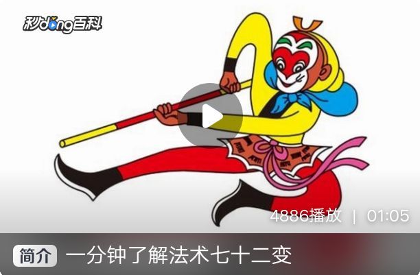 无题法术背景 躲三灾之法门 《西游记》[1]中孙悟空虽然从菩提祖师处学会了长生不老之术,但是只有躲过“三灾”,才能永生!“三灾”为天雷劈、阴火烧、赑风吹,在悟空的苦苦哀求下,须菩提老祖终传之躲避法术。书中菩提祖师向他介绍说,法术分按天罡数的三十六变和按地煞数的七十二变,孙悟空选择了后者,即七十二变。七十二变的主要用途是躲避天雷、阴火、赑风三灾带来的伤害,以此实现永生的愿望。 原著相关描述 祖师说:“也罢,你要学那一般?有一般天罡数,该三十六般变化,有一般地煞数,该七十二般变化。” 大众曰:“悟空,你是那世修来的缘法?前日师父拊耳低言,传与你的躲三灾变化之法,可都会么?”悟空笑道:“不瞒诸兄长说,一则是师父传授,二来也是我昼夜殷勤,那几般儿都会了。”大众道:“趁此良时,你试演演,让我等看看。”悟空闻说,抖搜精神,卖弄手段道:“众师兄请出个题目。要我变化甚么?”大众道:“就变棵松树罢。”悟空捻着诀,念动咒语,摇身一变,就变做一棵松树。 即便拔下一根毫毛,吹口仙气,叫“变!”变做个巴山虎,自身却变做个倚海龙,假妆做两个小妖,径往那压龙洞请老奶奶。这叫做七十二变神通大,指物腾那手段高。 先来的孙行者,次来的者行孙,后来的行者孙,返复三字,都是我师兄一人。他有七十二变化,腾那进来,盗了宝贝,装了令弟。 八戒道:“他有七十二般变化,就有七十二条性命。” 行者笑道:“我贤郎啊,你只知有三昧火赢得他,不知他有七十二般变化哩!”妖王道:“凭他怎么变化,我也认得,谅他决不敢进我门来。”行者道:“我儿,你虽然认得他,他却不变大的,如狼犺大象,恐进不得你门;他若变作小的,你却难认。”妖王道:“凭他变甚小的,我这里每一层门上,有四五个小妖把守,他怎生得入!”行者道:“你是不知,他会变苍蝇、蚊子、虼蚤,或是蜜蜂、蝴蝶并蟭蟟虫等项,又会变我模样,你却那里认得?”妖王道:“勿虑,他就是铁胆铜心,也不敢近我门来也。”沙僧道:“他有七十二般变化,就有七十二个头哩。” 威逼玉皇传旨意,灌江小圣把兵扬。相持七十单二变,各弄精神个个强。 好魔王,他也有七十二变,武艺也与大圣一般,只是身子狼犺些,欠钻疾,不活达些;把宝剑藏了,念个咒语,摇身一变,即变作八戒一般嘴脸 行者道:“我小和尚有七十二副嘴脸哩。” 原来行者有七十二般变化,若是变飞禽、走兽、花木、器皿、昆虫之类,却就连身子滚去了;但变人物,却只是头脸变了,身子变不过来,果然一身黄毛,两块红股,一条尾巴。 我徒弟孙悟空,他会七十二般变化。才变个火焰虫儿,飞进来救我。