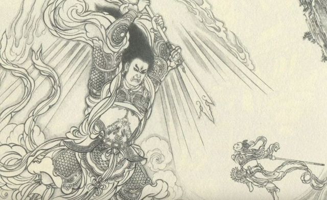 无题法术故事 第一战 《西游记》:孙悟空因在天宫当上弼马温之后,知道玉皇大帝给自己所封的官职是个养马的,于是生气返回花果山继续当自己的美猴王,还给自己写了个大旗幡高高挂在空中,自封了一个叫做齐天大圣的名号,其他六个魔王也趁机自封了某某大圣。玉皇大帝大怒后,即派托塔天王和哪吒三太子下界讨伐妖猴,玉帝封托塔天王为降妖除魔大元帅,哪吒三太子为三坛海会大神,李天王与哪吒叩头谢辞,带领了一些天兵天将下凡围剿花果山,托塔天王先是派自己部下的巨灵神为先锋出战,去试探捉拿孙悟空,孙悟空不认识巨灵神,二者相斗起来,巨灵神举起大斧劈头就砍,却难敌孙悟空的金箍棒而战败回归,且自己的兵器宣花大斧也被一打两断,大挫锐气。 三头六臂 托塔天王见状,恼怒巨灵神败其势气,于是下令斩之,哪吒觉得天庭现在正好是用人之际,便亲自出马上前阻止,向父亲李天王求情,赦免巨灵神之罪,并主动请战去大战孙悟空。哪吒穿上战甲,一手拿上宝剑,踏云飞到水帘洞外叫阵。 孙悟空正想收兵时,突然看到天上又下来了一个小孩神仙,独自出战气势汹汹,但孙悟空也不认识哪吒,所以上前问说,你是谁家的孩子,闯到我家地盘有什么事儿?哪吒自报家门,说自己是托塔天王的三太子哪吒,奉玉帝圣旨特意前来捉你,孙悟空嘲笑哪吒是个乳臭未干、只会空口说大话的小孩儿,还说自己站着不动让其任砍几下,哪吒见孙悟空小看自己,然后一气之下直接变成三头六臂的模样,每只手上都拿着一件降妖武器,孙悟空看其好生厉害,也不示弱,结果也学着哪吒变成三头六臂的样子,手中的金箍棒一晃变成三根,二者互相把自己的兵器变成数以百计至千万亿的规模数量,抛在空中打来打去,哪吒和孙悟空打斗的动静十分巨大。 共4张 三头六臂武器 这场恶战惊天动地不可开交,各山妖魔鬼怪都被吓得到处乱窜躲藏,二方各使神通斗法,变化无穷,不分高下,哪吒和孙悟空过多纠缠,已经大战了三十个回合,孙悟空不恋战,为了能速战速决,趁乱拔下自己的一根猴毛,变成了一个分身,假装在和哪吒缠斗。自己的真身却偷偷溜到哪吒身后出招,趁哪吒不备,专心致志地斗法时,突然一棒打下来。哪吒虽然听到金箍棒的风呼声,但出其不意已经中招,左臂上硬生生得挨了一棒而受伤,败阵而归,托塔天王见到连哪吒也被打走,觉得能击败巨灵神和哪吒的想必也不是泛泛之辈,无奈之下只好收兵回天庭复命。[4]